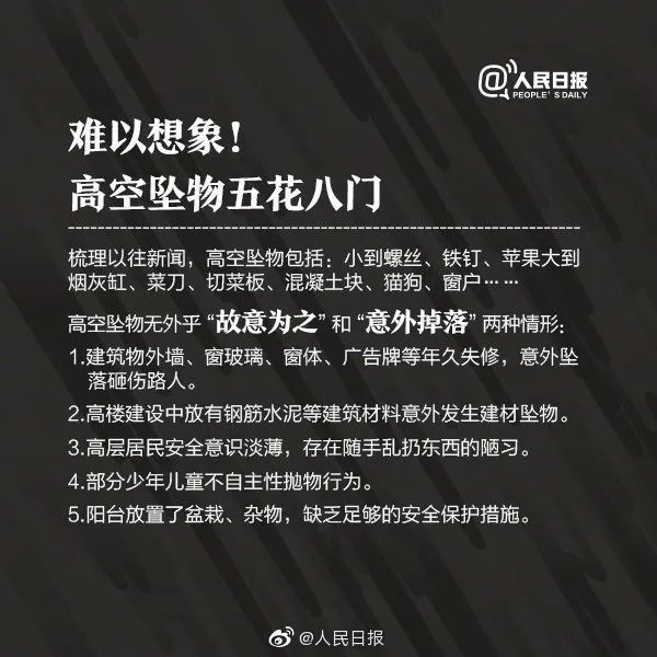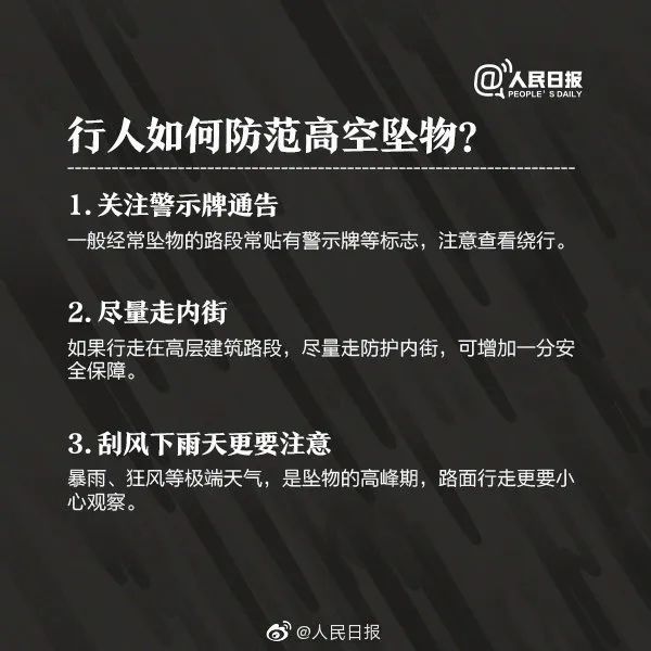 高空坠物的轨迹一般为抛物线,贴墙走的安全指数相对偏高,被砸伤的概率相对较低。